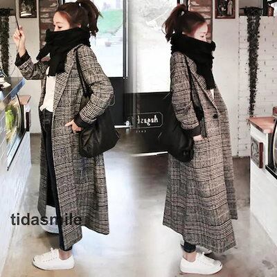グレンチェック ロング 千鳥柄ロングコート 大きいサイズ チェック柄 チェスターコート ロングコート レディース アウター コート 秋冬物 冬 オーバーサイズ