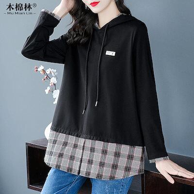 パーカー レディースファットシスターmmプラスサイズ婦人服2024秋新作長袖tシャツルーズフード付きミドル丈トレーナージャケット