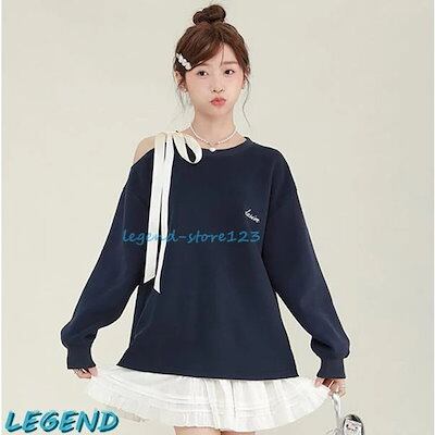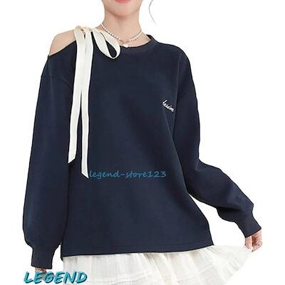パーカー レディース 肩出し リボン トレーナー 無地 長袖 丸首 可愛い オフショルダー トップス 甘い 少女 蝶結び ブラウス 裏起毛おすすめ商品
