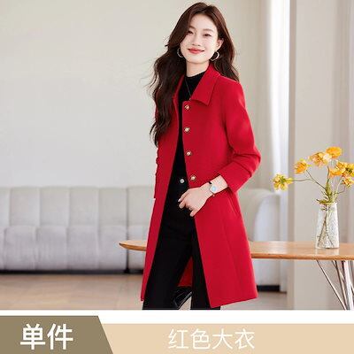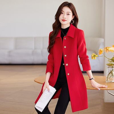 トレンチコートレディース アウター高級ウールコート ミドル丈 スリムフィット カジュアル ウインドブレーカー レディース 秋冬 レッド 高級コート
