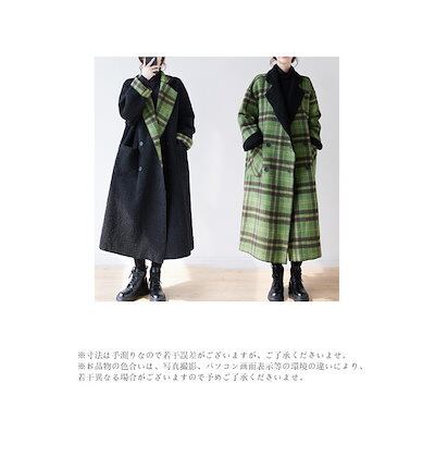 リバーシブル ロングコート レディース 冬 フェイクウール チェスターコート チェック ボア ロング コート 黒 アウター 女の子 羽織 ボアコート きれい ダブルボタン ビッグ襟 チェック柄コート
