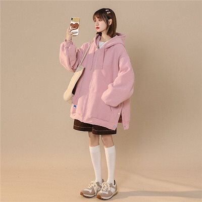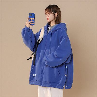 スウェット パーカー レディース 長袖 トップス 韓国風 カバー トレーナー 前開き ジップアップパーカー グラデーション 羽織り フード付き シンプル