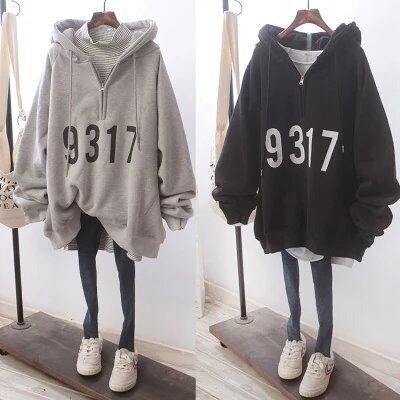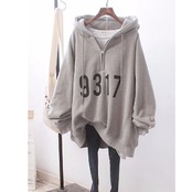 パーカースウェット長袖裏起毛厚手ガーディアンレディース韓国版怠惰風bfゆるい大サイズベルベット厚いジッパーコート