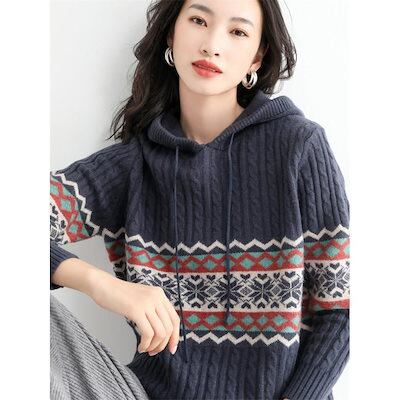 ニット ニットパーカー ニットセーター 花柄 レディース 長袖 トップス 韓国風 お洒落 体型カバー 丸首 カジュアル ニットウェア 上品 綺麗