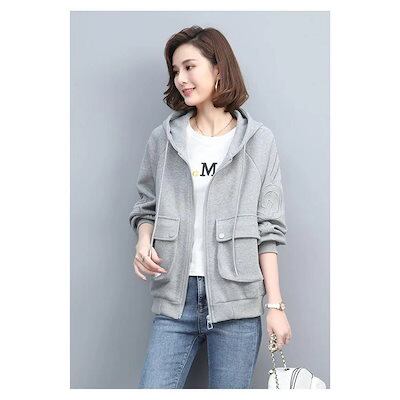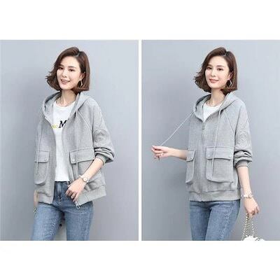 秋新作 パーカー ジャケット レディース ジップアップ パーカー体型カバー チュニック 長袖 ゆったり カジュアル アウター