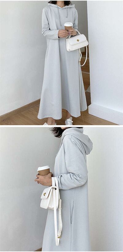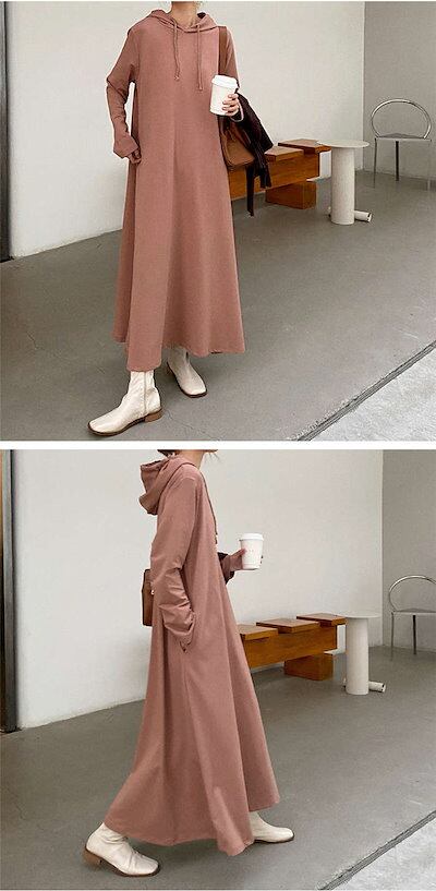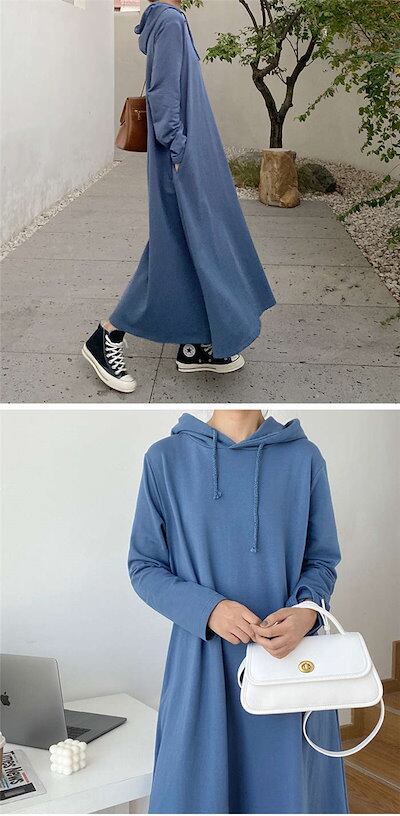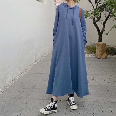 パーカーワンピース ワンピース ロング レディース ワンピース 春秋冬 長袖 ロング丈 マキシワンピース トレーナー スウェット プルオーバー 無地 体型カバー フード付き スエット カジュアル ロン