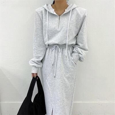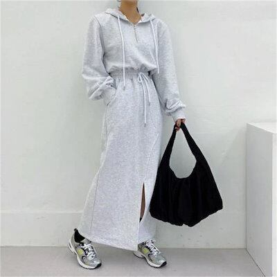 パーカーワンピース 秋冬 レディース きれいめ 長袖 スウェット フード付き ワンピース ロング丈 パーカーワンピース ウエストゴム ロングパーカー 春 秋 ロングワンピース スリット入り 切り替え