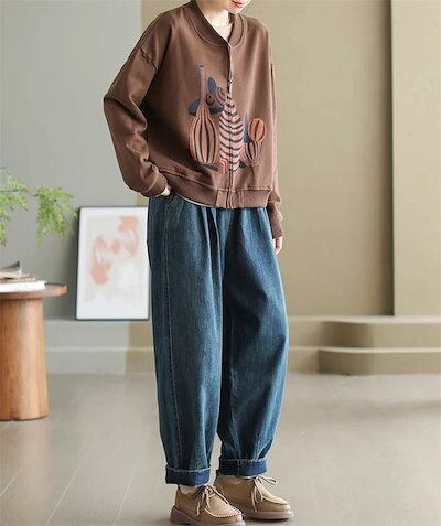 スタジャン レディース スウェット カーディガン トレーナー 長袖 トップス パーカー ジャケット カットソー 春 秋 ライトコート 羽織り ビッグシルエット カーデ 大人 大きいサイズ ゆったり 体