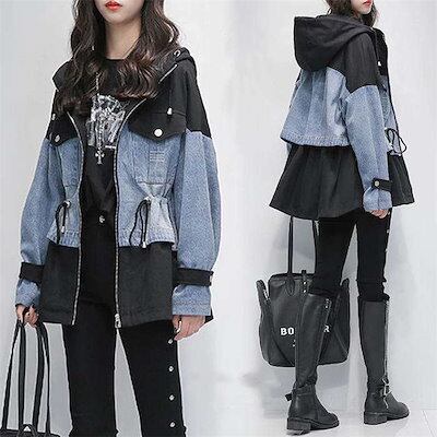 パーカー コート レディース 秋 春 コットン レディース 大人 パーカーコート デニム 異素材 切り替え 無地 レディース ブルゾン レディース きれいめ 秋コート 春コート アウター 無地 長袖