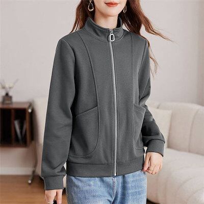スウェット カーディガン レディース 春秋 トレーナー トップス パーカー ジャケット アウター 秋 長袖 ライトコート 羽織り 春物 大人かわいい 大人 大きいサイズ ゆったり 体型カバー スタンド