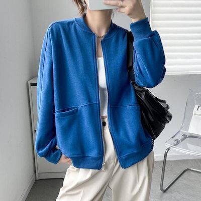 パーカー レディース 秋 スウェット カーディガン トレーナー トップス カジュアル ジャケット 春 秋 ライトコート 羽織り ビッグシルエット スタジャン 大きいサイズ アウター ゆったり 体型カバ
