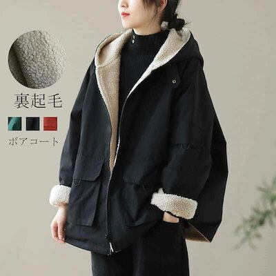 ボアコート 冬 モッズコート ジャケット 裏ボア レディース カーディガン アウター 長袖 ショートコート 冬 トップス レディース コート フード付き ボア 秋冬 コーディガン あったか パーカー