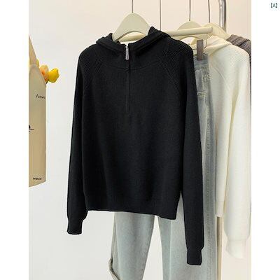 レディース パーカー 秋冬 厚手 ソフト ワックス 状 ジッパー ハーフ プラケット フード付き スウェットシャツ プルオーバー ショート セーター トップ