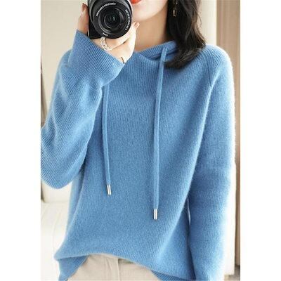 ニットニットパーカーニットセーター無地レディース長袖トップス丸首カジュアルニットウェア上品綺麗韓国風お洒落体型カバー