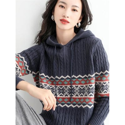 ニットニットパーカーニットセーター花柄レディース長袖トップス韓国風お洒落体型カバー丸首カジュアルニットウェア上品綺麗