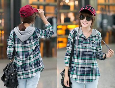 上着 シャツ レディース 長袖 チェック柄 赤 緑 グレー フード付き かっこいい 胸ポケット 春 秋 異素材 MIX 着回し カジュアル ボーイッシュ メンズライク ラフ シンプル クール 大人可愛