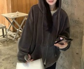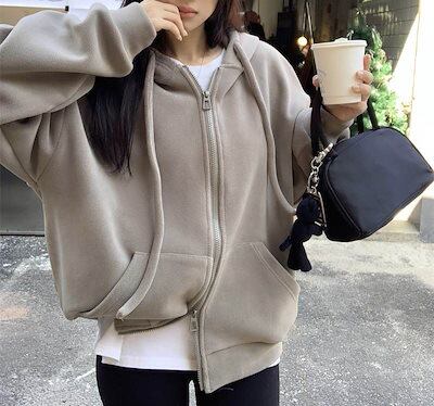 ベロア フード付き ジップアップ パーカー レディース トップス 羽織 丈長 長袖 ドロップショルダー フード ポケット 前開き ドロスト ベルベット かわいい 大人可愛い シンプル カジュアル おし