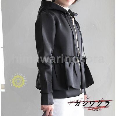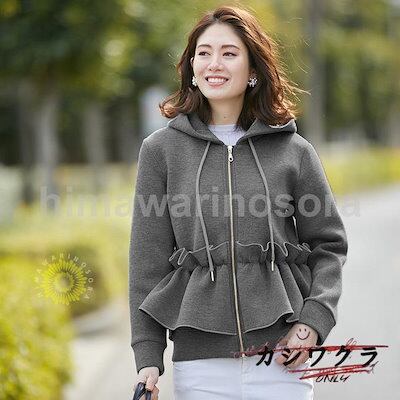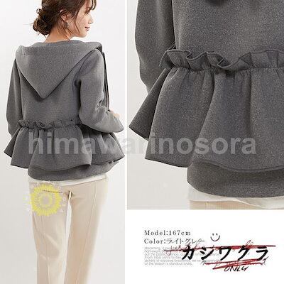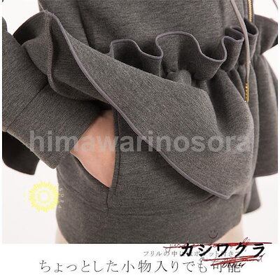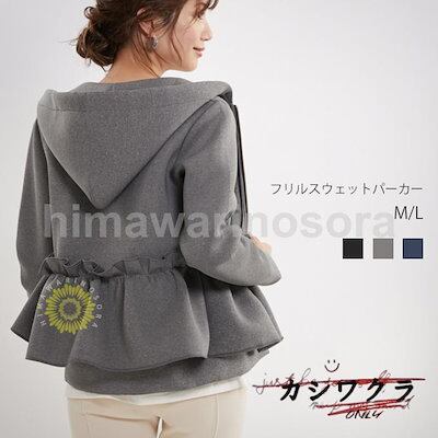 パーカー 可愛い レディース スウェットフリル スウェット風パーカーフード付 トップス フリルブルゾンポケット付き ウエストフリル レディース