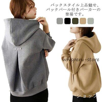 パーカー 長袖 パール レディース ゆったり 40代 無地 シンプル トップス 大人 カジュアル 厚手 トレーナー 大きいサイズ スウェット きれいめ 20代 30