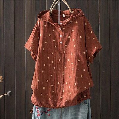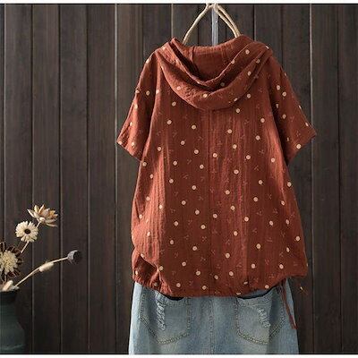 パーカー Tシャツ レディース ブラウス 春 夏 秋 リネン フード付き ガーゼ 半袖 シャツブラウス ガーゼ tシャツ 綿麻 トップス 着心地 ゆったり 体型カバー