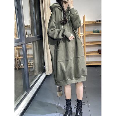 パーカー ロングパーカー ワンピース レディース トップス 無地 長袖 大きいサイズ 春 秋 冬 フードパーカーレディースファッション 体型カバー