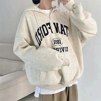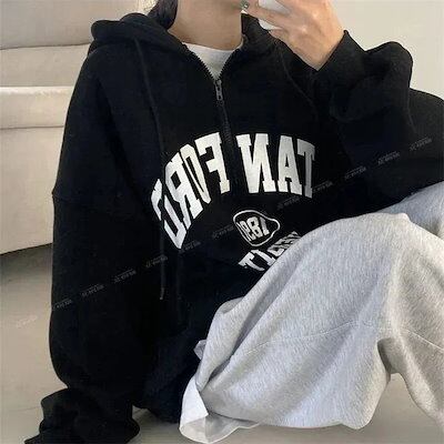 ファスナー スウエット 大きい 韓国 パーカー 裏起毛 厚手 パーカー レディース ゆるい カジュアル 大きい