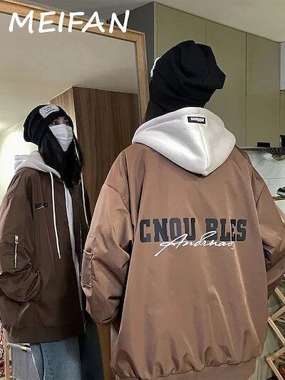 マウンテンパーカー ジャケット レディース フェイクツーピース フード付き ルーズ ベースボール 1372