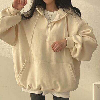 パーカー ハーフジップパーカー レディース トップス トレーナー スウェット かわいい おしゃれ 可愛い 長袖 薄手 普段着 通勤