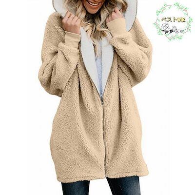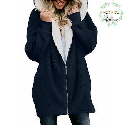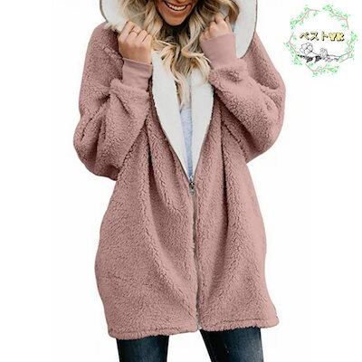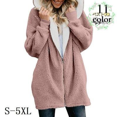 パーカー 長袖 ジップアップ 裏起毛 ボア もこもこ フード タックドカフス ゆったり レディース アウター 冬 防寒 寒さ対策 無地 シンプル カジ