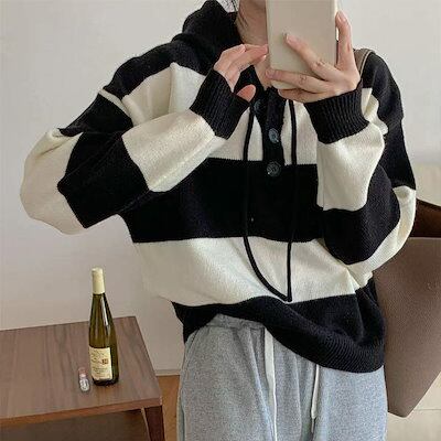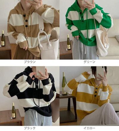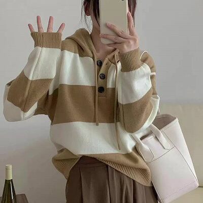 レディース トップス パーカー 太ボーダー フード付き ヘンリーネック カジュアル ナチュラル 大人可愛い オーソドックス ドロップショルダー 定番 おしゃれ お出かけ デイリー 学生 休日コーデ ブ