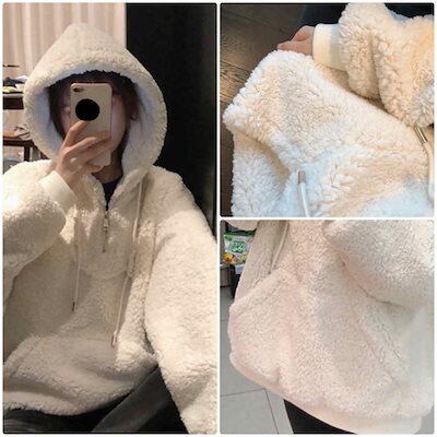レディース トップス パーカー プルオーバー もこもこ 長袖 無地 秋冬 カジュアル 大人可愛い ラフスタイル フェミニン オフィス お出かけ デート デイリー ピンク ホワイト S M L