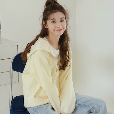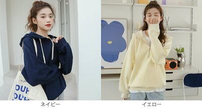 レディース パーカー フード付き プルオーバー スウェット ジッパー 長袖 トレーナー トップス カジュアル 可愛い ェミニン 学生 爽やか 春 おしゃれ デイリー 普段着 ネイビー イエロー フ