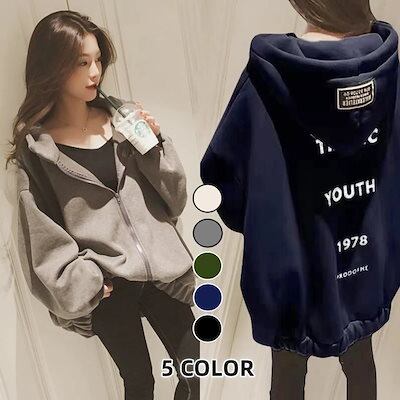 パーカー レディース 韓国ファ今週は25%オフッション ゆったり 大きいサイズ 裹起毛 スウェット カジュアル 百掛け カーディガン 秋冬 アウター シンプル おしゃれトレーナー 怠惰な風ジャケット