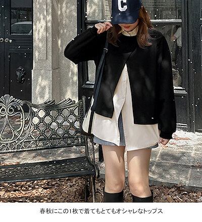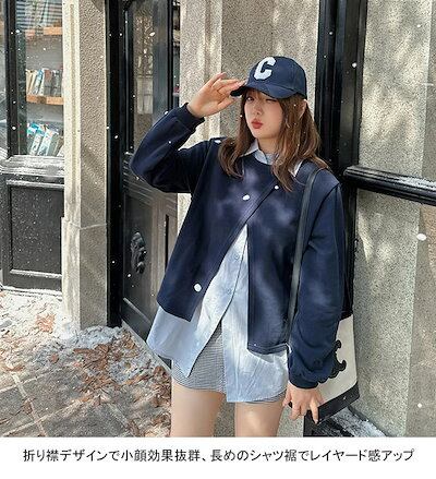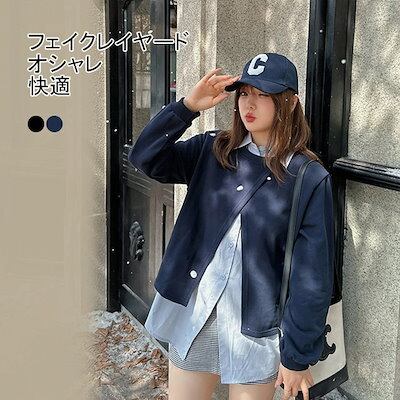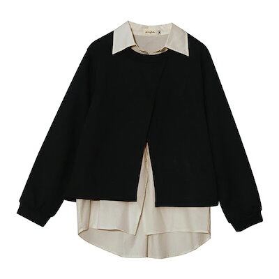 パーカー シャツ レディース フェイクレイヤード 長袖 ポロ襟 プルオーバー カジュアル トップス アウター プルオーバー ボタン 体型カバー レイヤード感 薄手 シンプル 無地 ゆったり 快適 着回