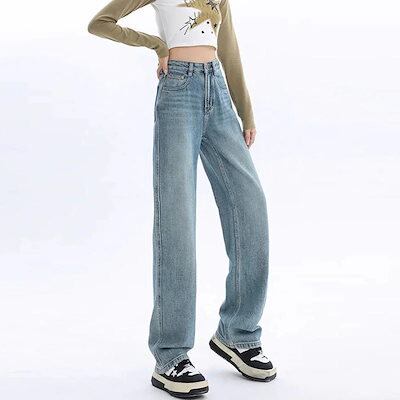 裏起毛 厚手 デニムボトムス レディース 保温 ワイドパンツ ハイウェスト ドレープ感 モップパンツ 着痩せ ゆったり ジョガーパンツ