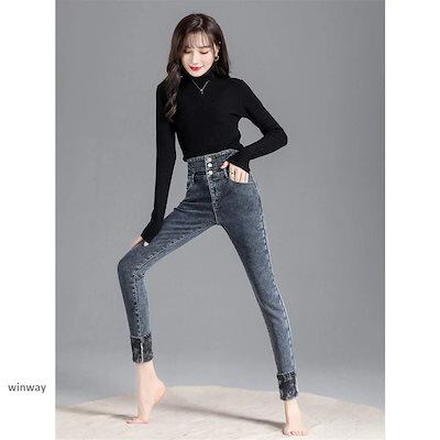 デニムパンツ 裏起毛 レディース スキニーデニム ボトムス ロング ジーンズ ジーパン ストレッチ ビンテージ 着痩せ スリム