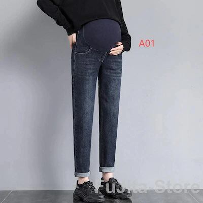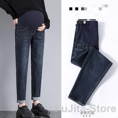 デニム テーパードパンツ 裏起毛 マタニティ ロングパンツ センタープレス レディース マタニティボトム もこもこ 厚手 ウエストゴム ハ