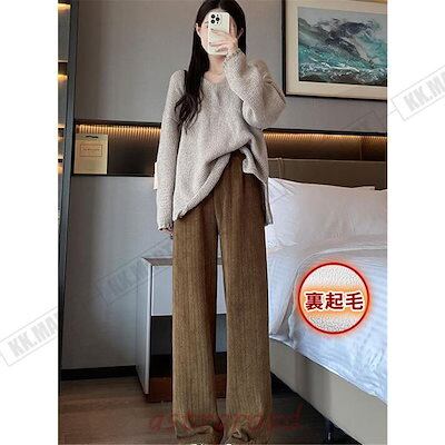 ワイドパンツ レディース ストレート 裏起毛 ガウチョパンツ ジャージパンツ 履く毛布 あったか ウエストゴム 厚手 防寒 着痩せ 服 暖 おしゃれ