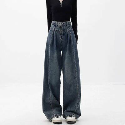 デニムワイドパンツ レディース デニム ワイド パンツ タックパンツ ロング丈 ジーンズ デニムパンツ ボトムス ハイウエスト リラックス ジーパン バギーパンツ ゆったり おしゃれ 体型カバー 着痩