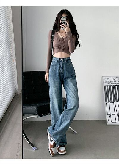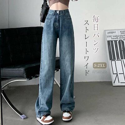 ストレートワイドパンツ デニムパンツ レディース パンツ ジーパン 大人カジュアル デニムワイドパンツ ボトムス ロング 長ズボン ジーンズ ハイウエスト 大きいサイズ ゆったり 体型カバー 柔らか