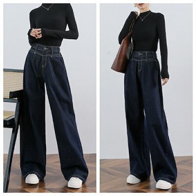 ワイドパンツ デニムパンツ レディース デニムワイドパンツ カジュアル ジーパン ロングパンツ 柔らか 秋 冬 ズボン ハイウエスト ボトムス 大きいサイズ ゆったり リラックス 上品 オシャレ 着回