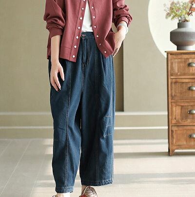 ワイドパンツ レディース 秋冬 デニムパンツ パンツ ロング ゆったり ボトムス ワイドデニムパンツ 春秋 カジュアル ズボン ロング丈 大きいサイズ ゆったり 美脚 体型カバーカジュアル シンプ
