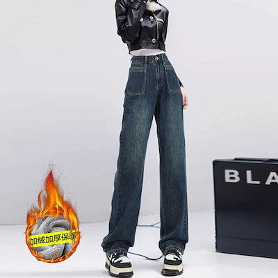 脚長効果! 裏起毛デニムパンツ ジーンズ レディース パンツ ワイドパンツ スキニー 裏起毛 韓国ファッション ズボン秋冬