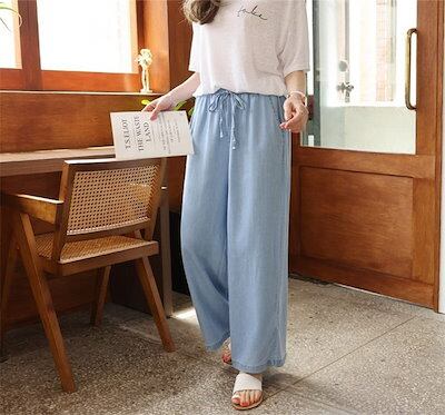 デニムパンツ 涼しい レディース 薄手 デニムパンツ 夏 ワイドパンツ 大きいサイズ 接触冷感 デニム ワイドパンツ ボトムス リラックスパンツ ゆったり 体型カバー ハイウエスト 大人 楽ちん ウ