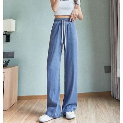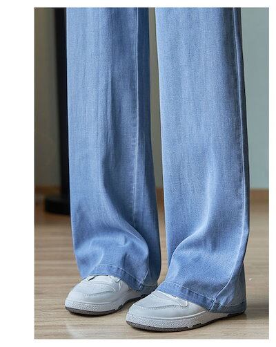デニムパンツ レディース ワイドパンツ 薄手 ストレートパンツ 接触冷感 デニム パンツ 大きいサイズ 涼しい ボトムス ロングパンツ ジーンズ ゆったり 体型カバー ハイウエスト 大人 楽ちん ウエ