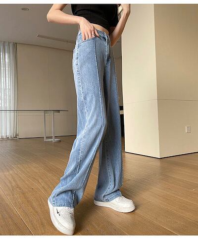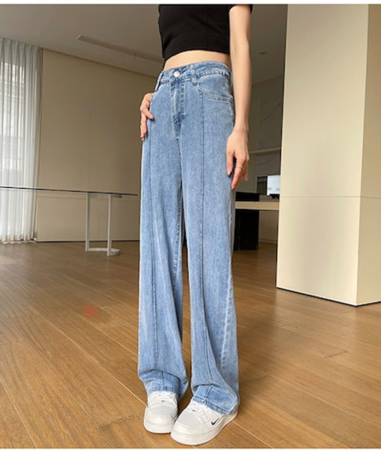 ワイドパンツ レディース デニムパンツ センターラインデザイン ストレートパンツ 薄手 接触冷感 デニム パンツ 涼しい ボトムス ロングパンツ ジーンズ 大きいサイズ ゆったり 体型カバー 大人 楽