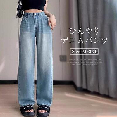 デニムワイドパンツ レディース デニムパンツ ストレートパンツ 薄手 ワイド デニム パンツ 接触冷感 涼しい ボトムス ロングパンツ ジーンズ 大きいサイズ ゆったり 体型カバー 大人 楽ちん 柔ら