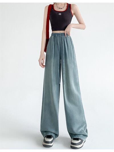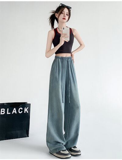 ワイドパンツ 接触冷感 夏 デニムパンツ レディース ひんやり パンツ 爽やか デニムワイドパンツ 涼しい ジーンズ ロング丈 ボトムス 冷感素材 リラックス ウエストゴム ジーパン バギーパンツ イ
