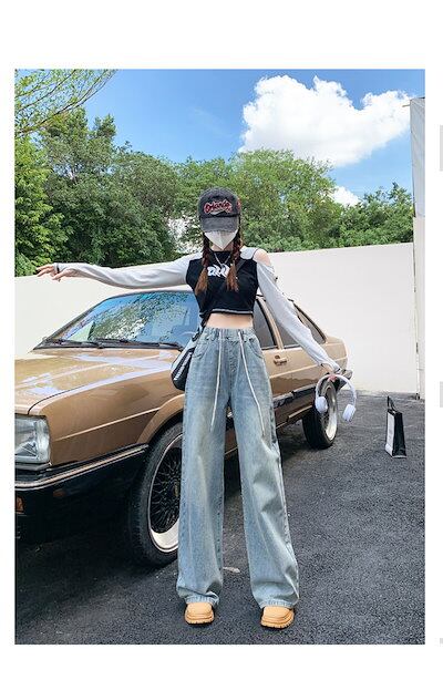 デニムワイドパンツ レディース デニム ワイド パンツ 春秋 ジーンズ デニムパンツ ロング丈 ボトムス ストレート リラックス ウエストゴム ジーパン バギーパンツ イージーパンツ ゆったり おしゃ