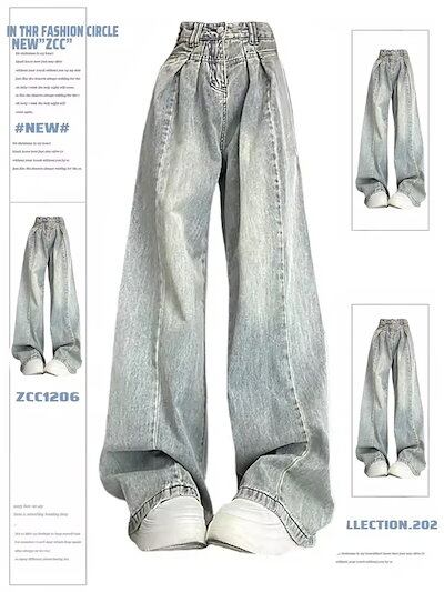 激?れ人気商品 脚長効果!デニムパンツ かっこいい!デニムパンツ レトロ 明るい色 ハイウエスト ワイドレッグ ジーンズ レディース 2024 新しいスタイル ドレープ